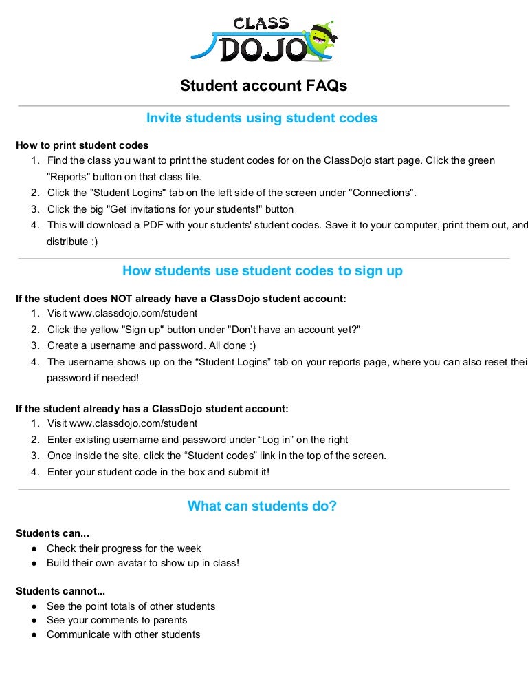 What can Class Dojo do for me and my students? - Class ... from classdojoforeveryone.weebly.com There are a variety of methods you can use to log into your classdojo student account on the android app. Logging in from your parent's account; With the app's extremely simple interface, tracking attendance and recording students' behavior is a snap, and classdojo produces helpful reports instructors can share with parents and colleagues. Click the three horizontal dots in the upper right corner; For devices in a classroom Learn more schools resources log in sign up sign up for classdojo. Drop files here, paste or browse browse The video explains how to login as a student using the qr code method on a mob.